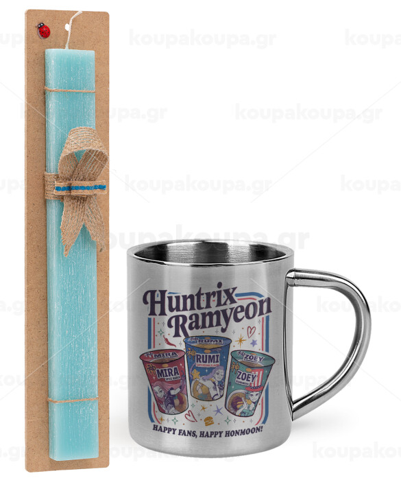 Ramyeon Huntrix, Easter Set, metallic thermal cup (300ml) & aromatic flat Easter candle (30cm) (TURQUOISE)