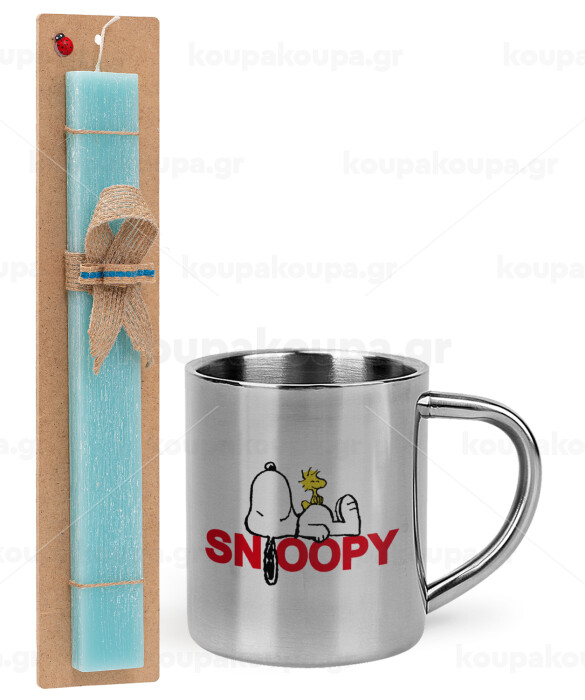 Snoopy sleep, Easter Set, metallic thermal cup (300ml) & aromatic flat Easter candle (30cm) (TURQUOISE)