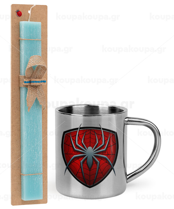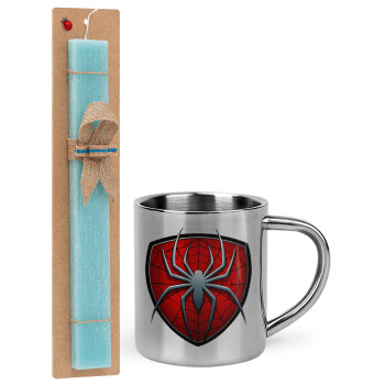 Spider-man, Easter Set, metallic thermal cup (300ml) & aromatic flat Easter candle (30cm) (TURQUOISE)