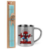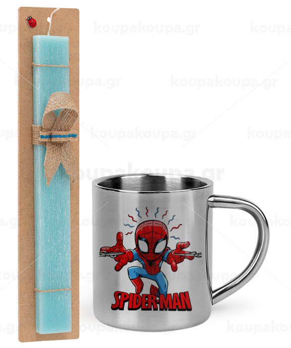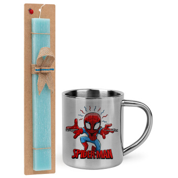 Spiderman flying, Easter Set, metallic thermal cup (300ml) & aromatic flat Easter candle (30cm) (TURQUOISE)