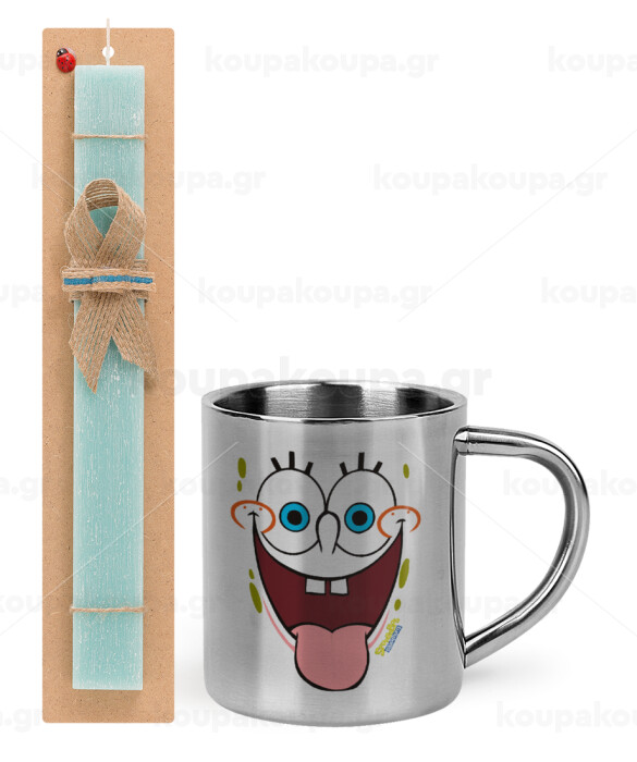 SpongeBob SquarePants smile, Easter Set, metallic thermal cup (300ml) & aromatic flat Easter candle (30cm) (TURQUOISE)