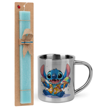 Stitch Ice cream, Easter Set, metallic thermal cup (300ml) & aromatic flat Easter candle (30cm) (TURQUOISE)