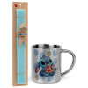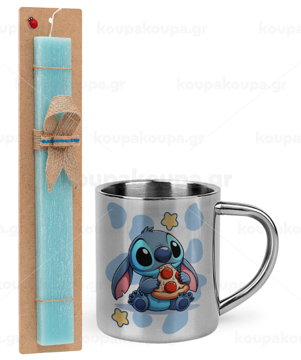 Stitch Pizza, Easter Set, metallic thermal cup (300ml) & aromatic flat Easter candle (30cm) (TURQUOISE)