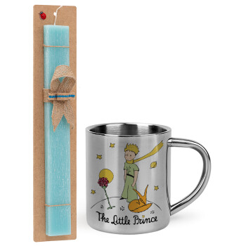 The Little prince classic, Easter Set, metallic thermal cup (300ml) & aromatic flat Easter candle (30cm) (TURQUOISE)