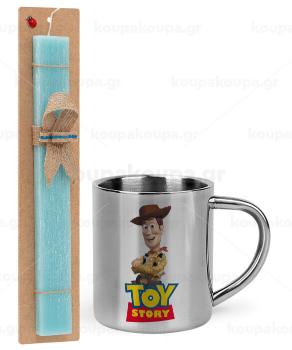 Woody cowboy, Easter Set, metallic thermal cup (300ml) & aromatic flat Easter candle (30cm) (TURQUOISE)