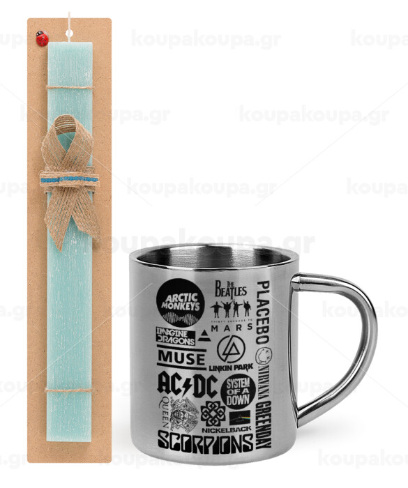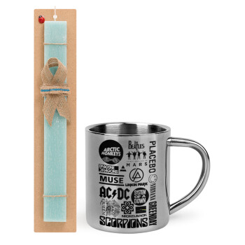 Best Rock Bands Collection, Easter Set, metallic thermal cup (300ml) & aromatic flat Easter candle (30cm) (TURQUOISE)