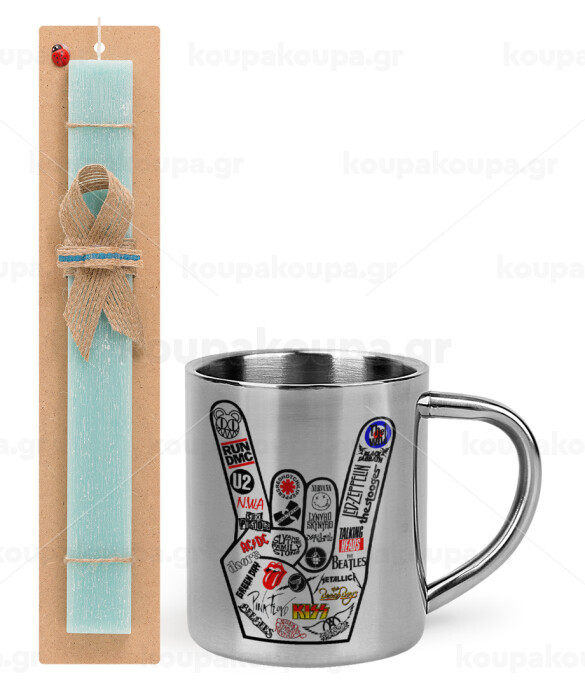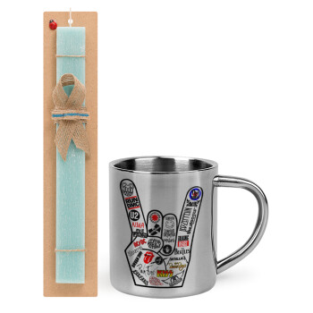 Best Rock Bands hand, Easter Set, metallic thermal cup (300ml) & aromatic flat Easter candle (30cm) (TURQUOISE)