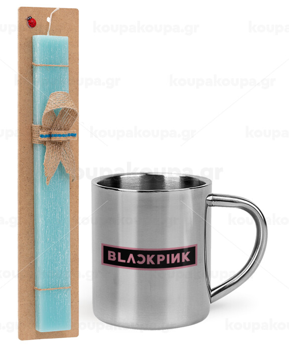 BLACKPINK, Easter Set, metallic thermal cup (300ml) & aromatic flat Easter candle (30cm) (TURQUOISE)
