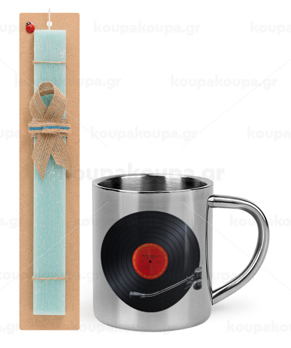Columbia records bruce springsteen, Easter Set, metallic thermal cup (300ml) & aromatic flat Easter candle (30cm) (TURQUOISE)