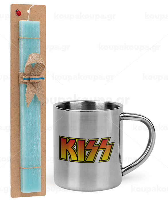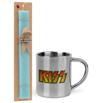 KISS, Easter Set, metallic thermal cup (300ml) & aromatic flat Easter candle (30cm) (TURQUOISE)