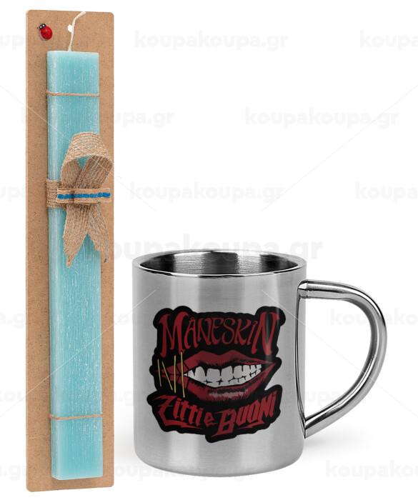 Maneskin lips, Easter Set, metallic thermal cup (300ml) & aromatic flat Easter candle (30cm) (TURQUOISE)