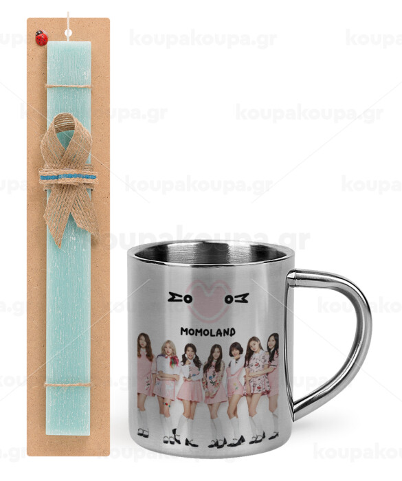 Momoland pink, Easter Set, metallic thermal cup (300ml) & aromatic flat Easter candle (30cm) (TURQUOISE)