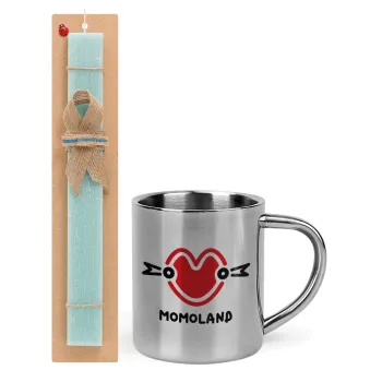 Momoland, Easter Set, metallic thermal cup (300ml) & aromatic flat Easter candle (30cm) (TURQUOISE)