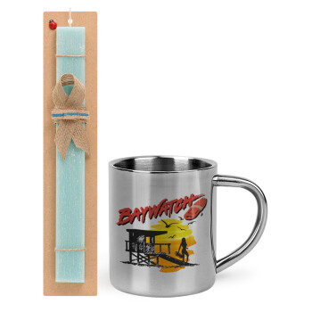 Baywatch, Easter Set, metallic thermal cup (300ml) & aromatic flat Easter candle (30cm) (TURQUOISE)