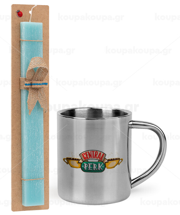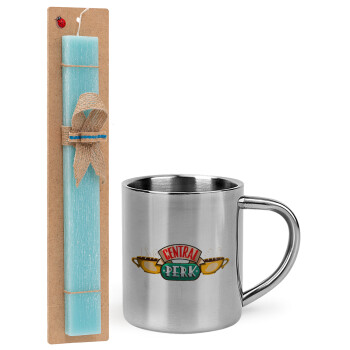 Central perk, Easter Set, metallic thermal cup (300ml) & aromatic flat Easter candle (30cm) (TURQUOISE)