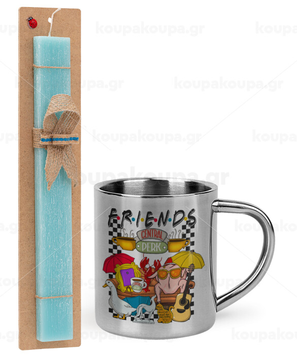 Friends, Easter Set, metallic thermal cup (300ml) & aromatic flat Easter candle (30cm) (TURQUOISE)