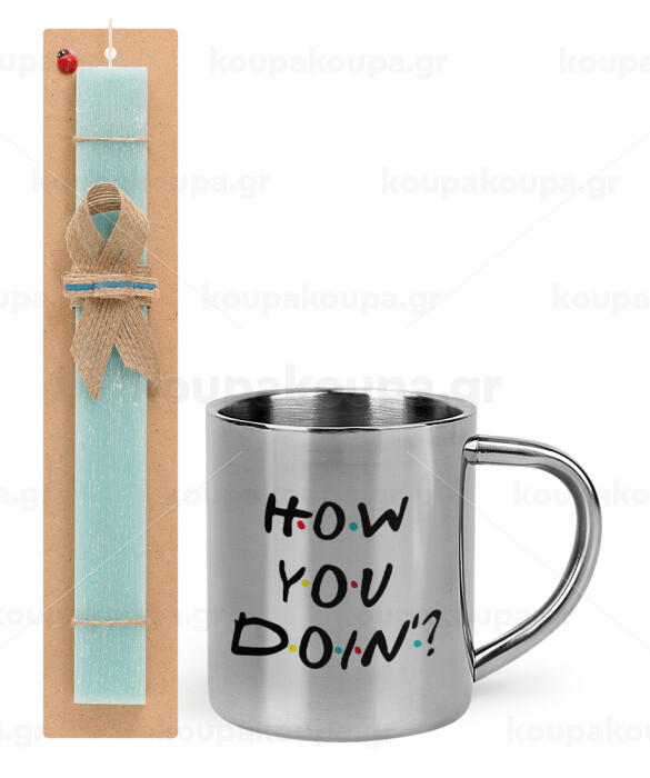 Friends How You Doin'?, Easter Set, metallic thermal cup (300ml) & aromatic flat Easter candle (30cm) (TURQUOISE)