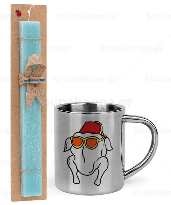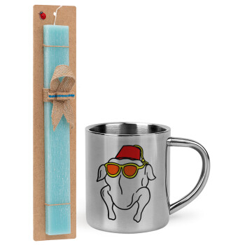 Friends turkey, Easter Set, metallic thermal cup (300ml) & aromatic flat Easter candle (30cm) (TURQUOISE)