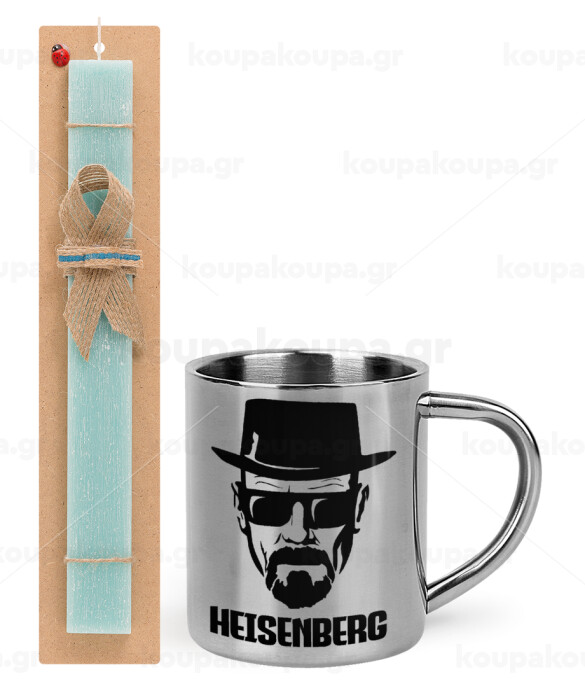Heisenberg breaking bad, Easter Set, metallic thermal cup (300ml) & aromatic flat Easter candle (30cm) (TURQUOISE)