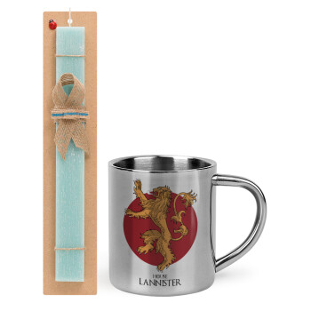 House Lannister GOT, Easter Set, metallic thermal cup (300ml) & aromatic flat Easter candle (30cm) (TURQUOISE)