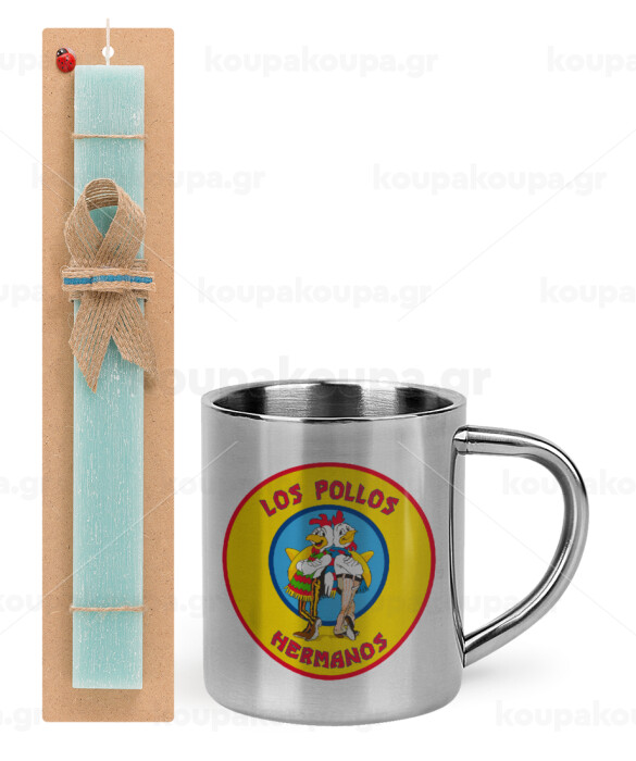 Los Pollos Hermanos, Easter Set, metallic thermal cup (300ml) & aromatic flat Easter candle (30cm) (TURQUOISE)