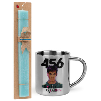 Squid game 456 Gi-Hun, Easter Set, metallic thermal cup (300ml) & aromatic flat Easter candle (30cm) (TURQUOISE)