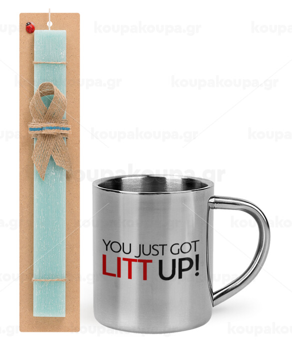 Suits You Just Got Litt Up! , Easter Set, metallic thermal cup (300ml) & aromatic flat Easter candle (30cm) (TURQUOISE)