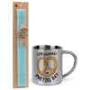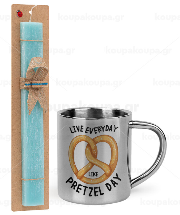 The office, Live every day like pretzel day, Easter Set, metallic thermal cup (300ml) & aromatic flat Easter candle (30cm) (TURQUOISE)