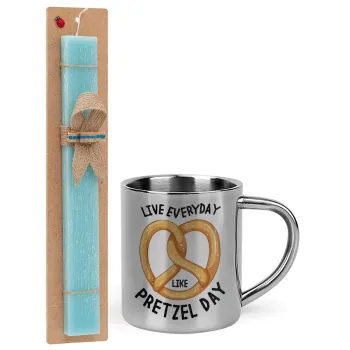 The office, Live every day like pretzel day, Easter Set, metallic thermal cup (300ml) & aromatic flat Easter candle (30cm) (TURQUOISE)