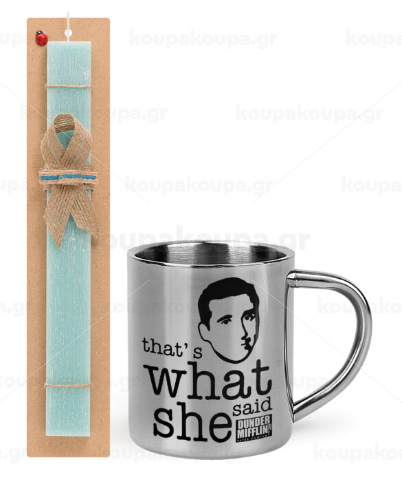 The office Michael That's what she said, Easter Set, metallic thermal cup (300ml) & aromatic flat Easter candle (30cm) (TURQUOISE)