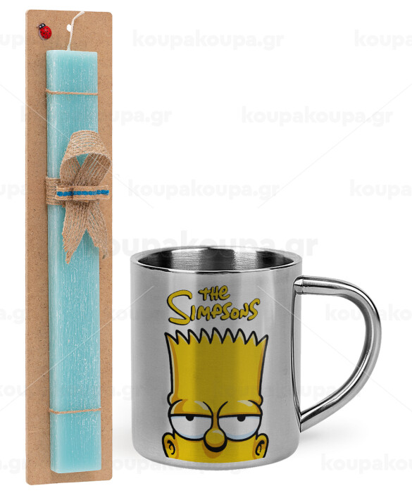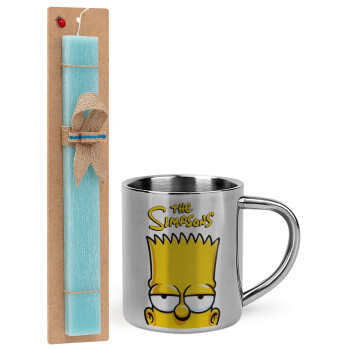 The Simpsons Bart, Easter Set, metallic thermal cup (300ml) & aromatic flat Easter candle (30cm) (TURQUOISE)