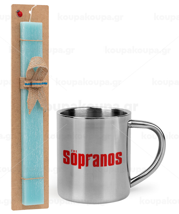The Sopranos, Easter Set, metallic thermal cup (300ml) & aromatic flat Easter candle (30cm) (TURQUOISE)