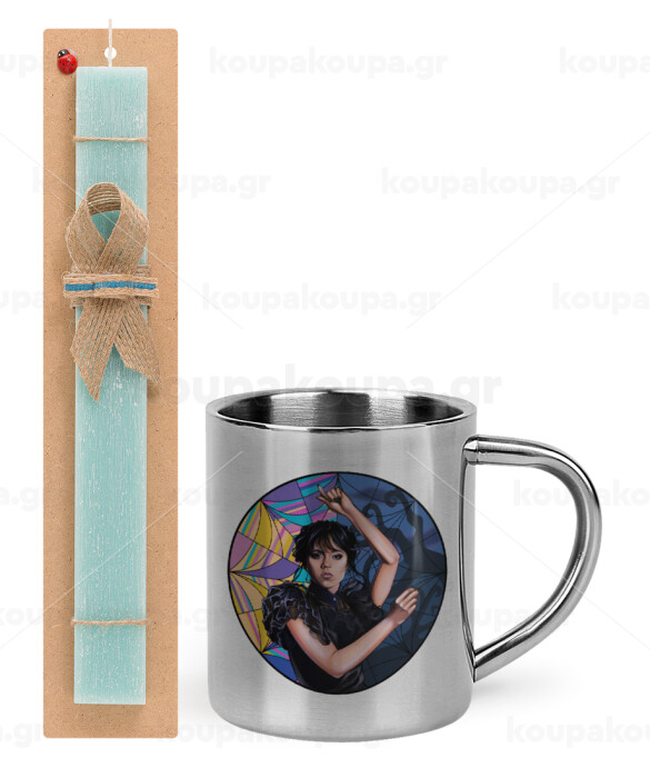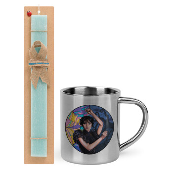 Wednesday dance, Easter Set, metallic thermal cup (300ml) & aromatic flat Easter candle (30cm) (TURQUOISE)