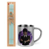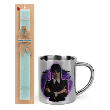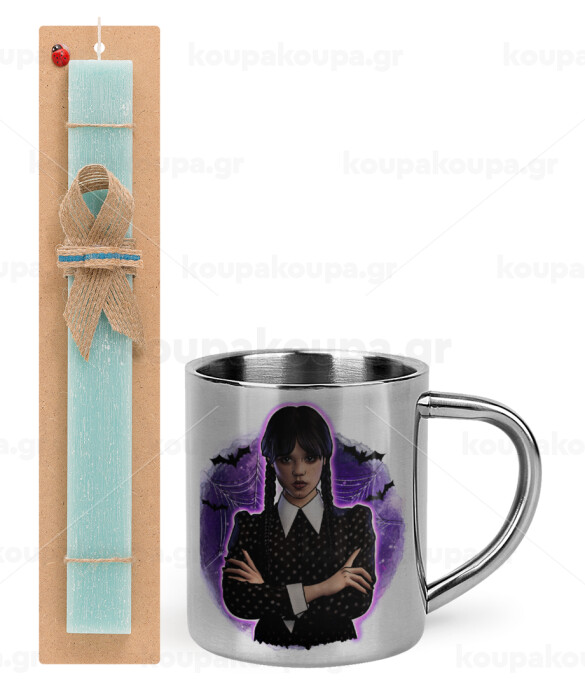 Wednesday moonlight, Easter Set, metallic thermal cup (300ml) & aromatic flat Easter candle (30cm) (TURQUOISE)