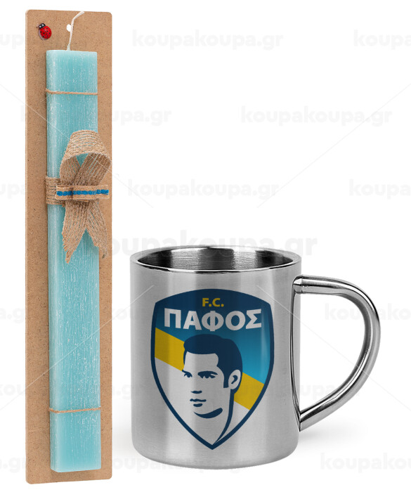 Πάφος FC, Easter Set, metallic thermal cup (300ml) & aromatic flat Easter candle (30cm) (TURQUOISE)