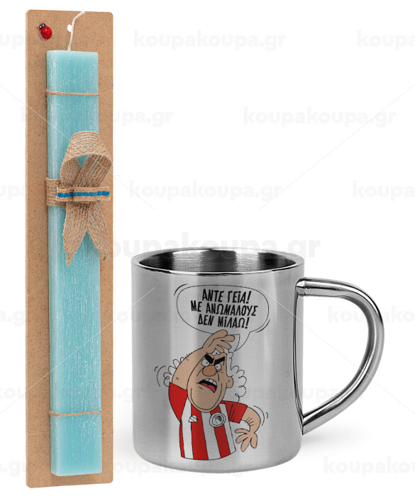 Τάκης, Άντε γεια, με ανώμαλους δεν μιλάω!, Easter Set, metallic thermal cup (300ml) & aromatic flat Easter candle (30cm) (TURQUOISE)