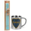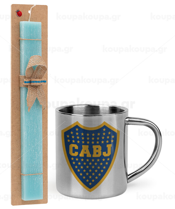 Club Atlético Boca Juniors, Easter Set, metallic thermal cup (300ml) & aromatic flat Easter candle (30cm) (TURQUOISE)