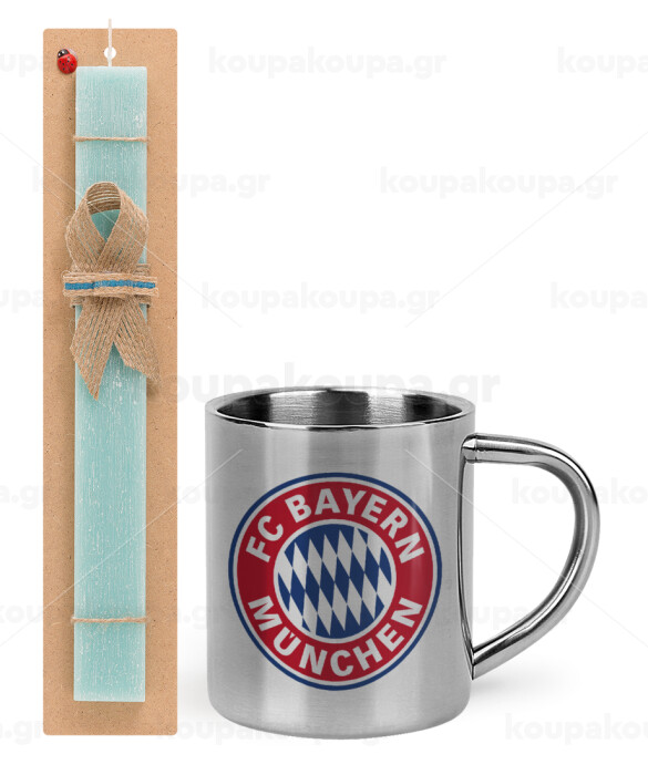 FC Bayern Munich, Easter Set, metallic thermal cup (300ml) & aromatic flat Easter candle (30cm) (TURQUOISE)