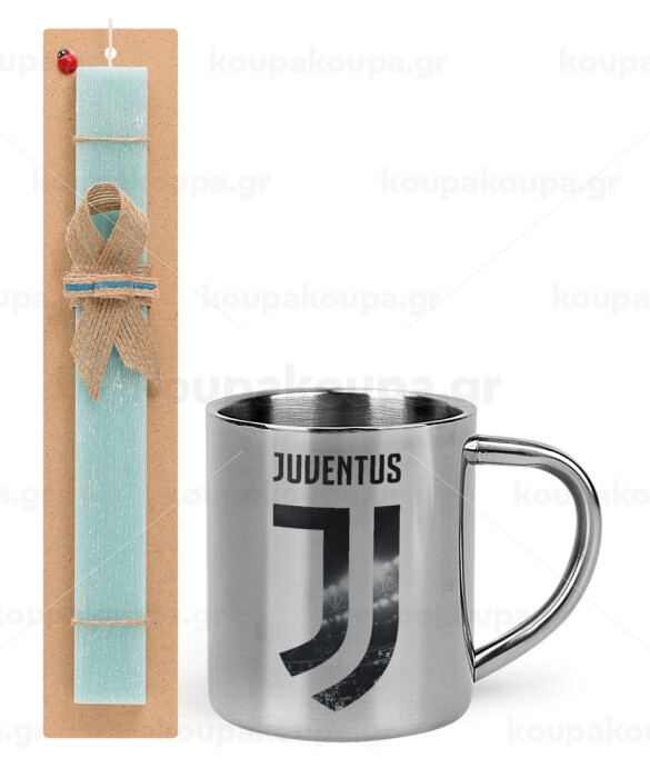 FC Juventus, Easter Set, metallic thermal cup (300ml) & aromatic flat Easter candle (30cm) (TURQUOISE)