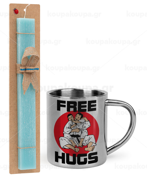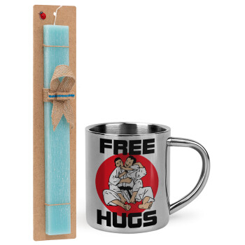 JUDO free hugs, Easter Set, metallic thermal cup (300ml) & aromatic flat Easter candle (30cm) (TURQUOISE)