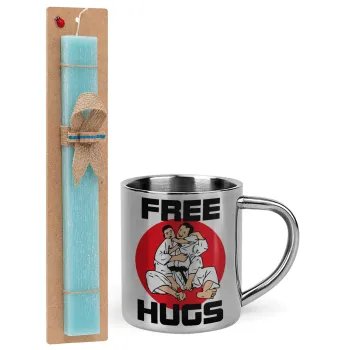 JUDO free hugs, Easter Set, metallic thermal cup (300ml) & aromatic flat Easter candle (30cm) (TURQUOISE)