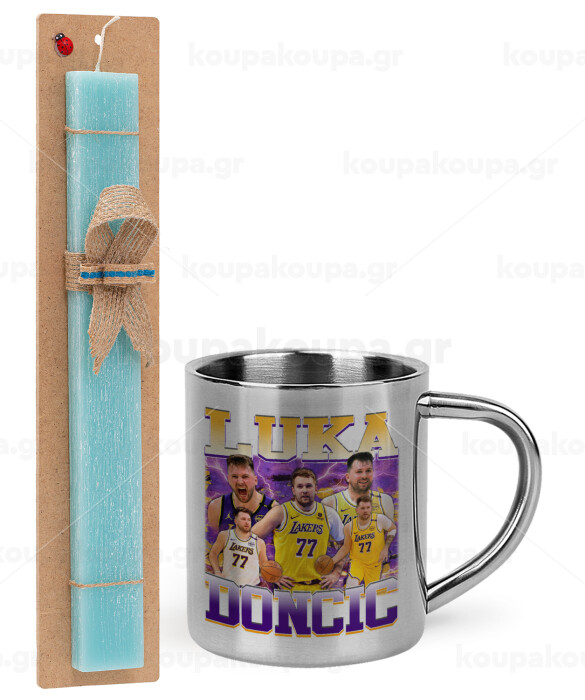 Luka Doncic Basketball , Easter Set, metallic thermal cup (300ml) & aromatic flat Easter candle (30cm) (TURQUOISE)