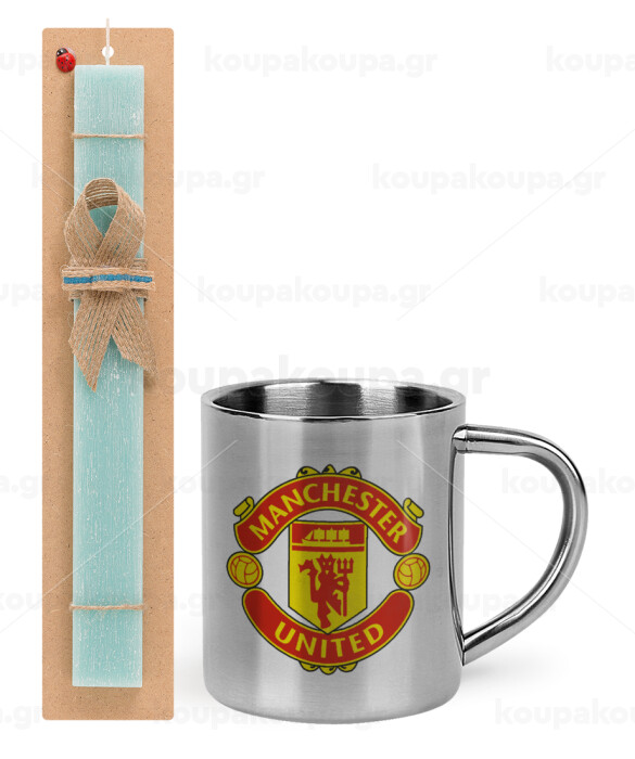 Manchester United F.C., Easter Set, metallic thermal cup (300ml) & aromatic flat Easter candle (30cm) (TURQUOISE)