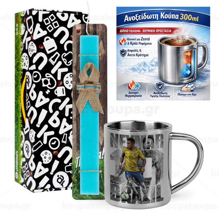 Neymar (Νεϊμάρ), Easter Set, metallic thermal cup (300ml) & aromatic flat Easter candle (30cm) (TURQUOISE)