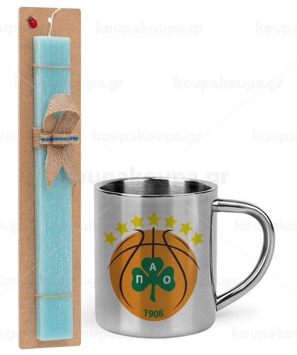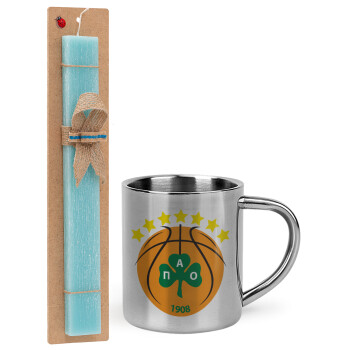 PAO BC, Easter Set, metallic thermal cup (300ml) & aromatic flat Easter candle (30cm) (TURQUOISE)