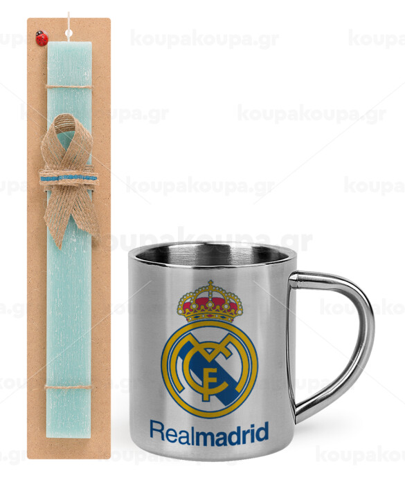Real Madrid CF, Easter Set, metallic thermal cup (300ml) & aromatic flat Easter candle (30cm) (TURQUOISE)