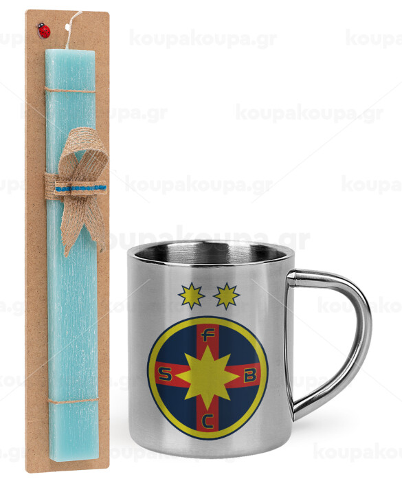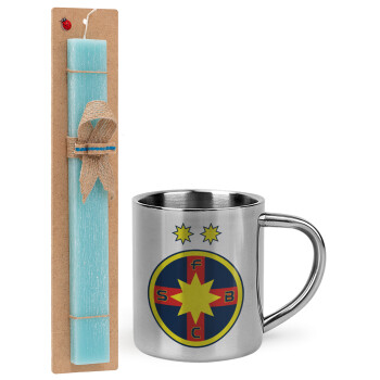 FC Steaua Bucuresti (FCSB), Easter Set, metallic thermal cup (300ml) & aromatic flat Easter candle (30cm) (TURQUOISE)