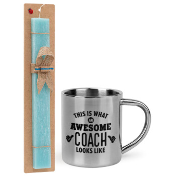This is what an awesome COACH looks like!, Easter Set, metallic thermal cup (300ml) & aromatic flat Easter candle (30cm) (TURQUOISE)