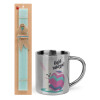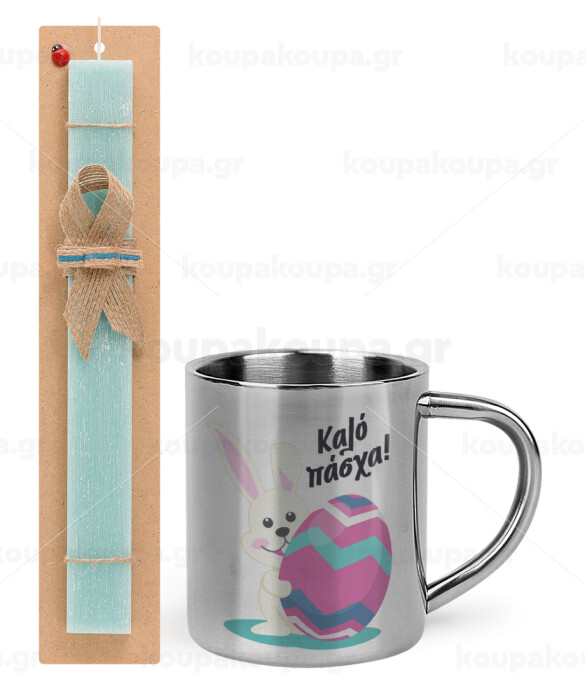 Καλό πάσχα, Easter Set, metallic thermal cup (300ml) & aromatic flat Easter candle (30cm) (TURQUOISE)