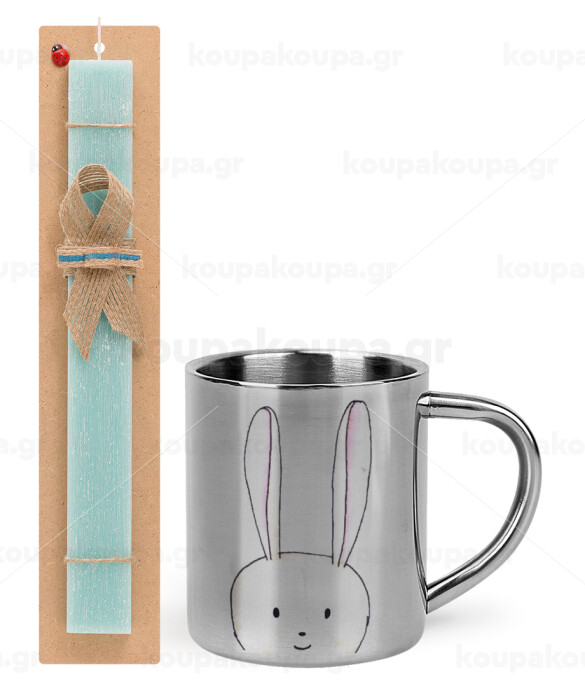 Ο λαγός του πάσχα, Easter Set, metallic thermal cup (300ml) & aromatic flat Easter candle (30cm) (TURQUOISE)